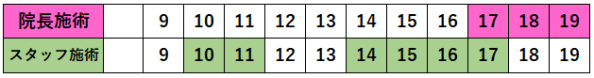 色がついているところが予約が入りやすい時間です。