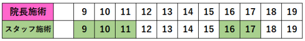 色がついているところが予約が入りやすい時間です。