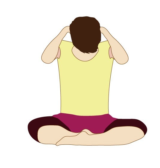 まず、頭の後ろで手を組みます。