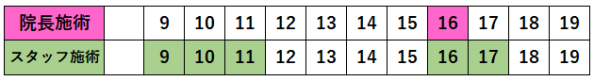 色がついているところが予約が入りやすい時間です。